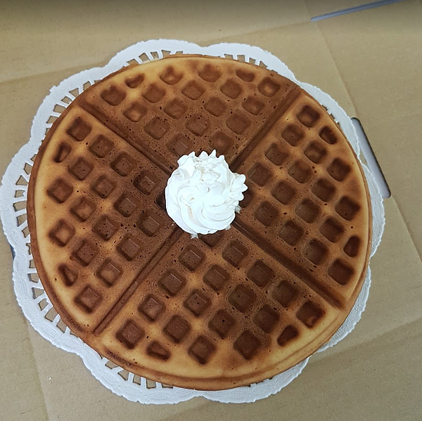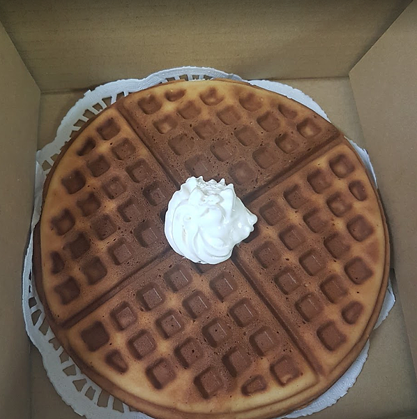 想有一些配色,鮮奶油是個很搭的品項。今天艾媽要測試的現烤艾鬆餅就是加上鮮奶油後在有八個透氣孔這樣環境下的盒形內,最久能撐幾分鐘到艾媽不能接受的程度。