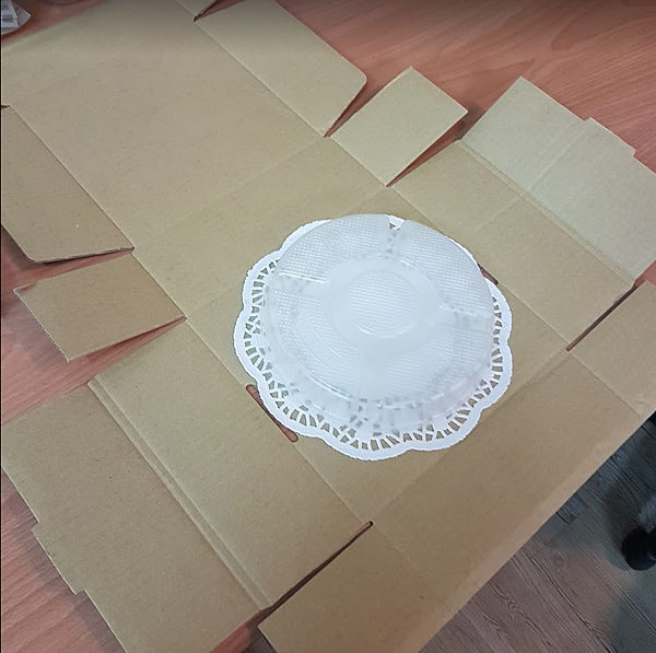 20分鐘左右的狀態艾媽若是消費者應該還可以接受。但若考慮外送人員機車可能的晃動以及其它上料,基本上超過30分鐘後的狀態艾媽認為「現烤艾鬆餅」是絕對會被打搶的。這個盒型高有7.5cm,原來艾媽認為需要這樣高盒子蓋下來才不會擠壓到鬆餅上面的上料,但是真的是要實驗過才會知道,這高就有點太高了,艾媽不好將鬆餅放入也不好將鬆餅從裡面拿出。所以這個盒子---> 不行😣。(嘖,此試盒艾媽賠400 😭,還好沒有又自己開刀模...)